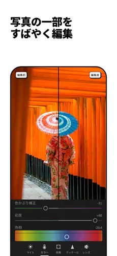 プロカメラマンから初心者まで、誰でも直感的に操作でき、スマホやタブレットで本格的な編集が可能です。