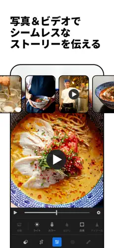 ワンタップで写真を劇的に変えるフィルターやプリセットを多数搭載。