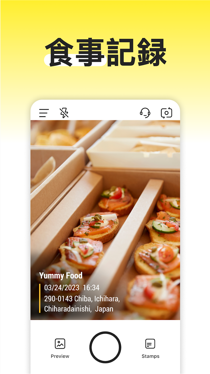 • タイムスタンプ機能:撮影した写真に自動で日付と時刻を追加。