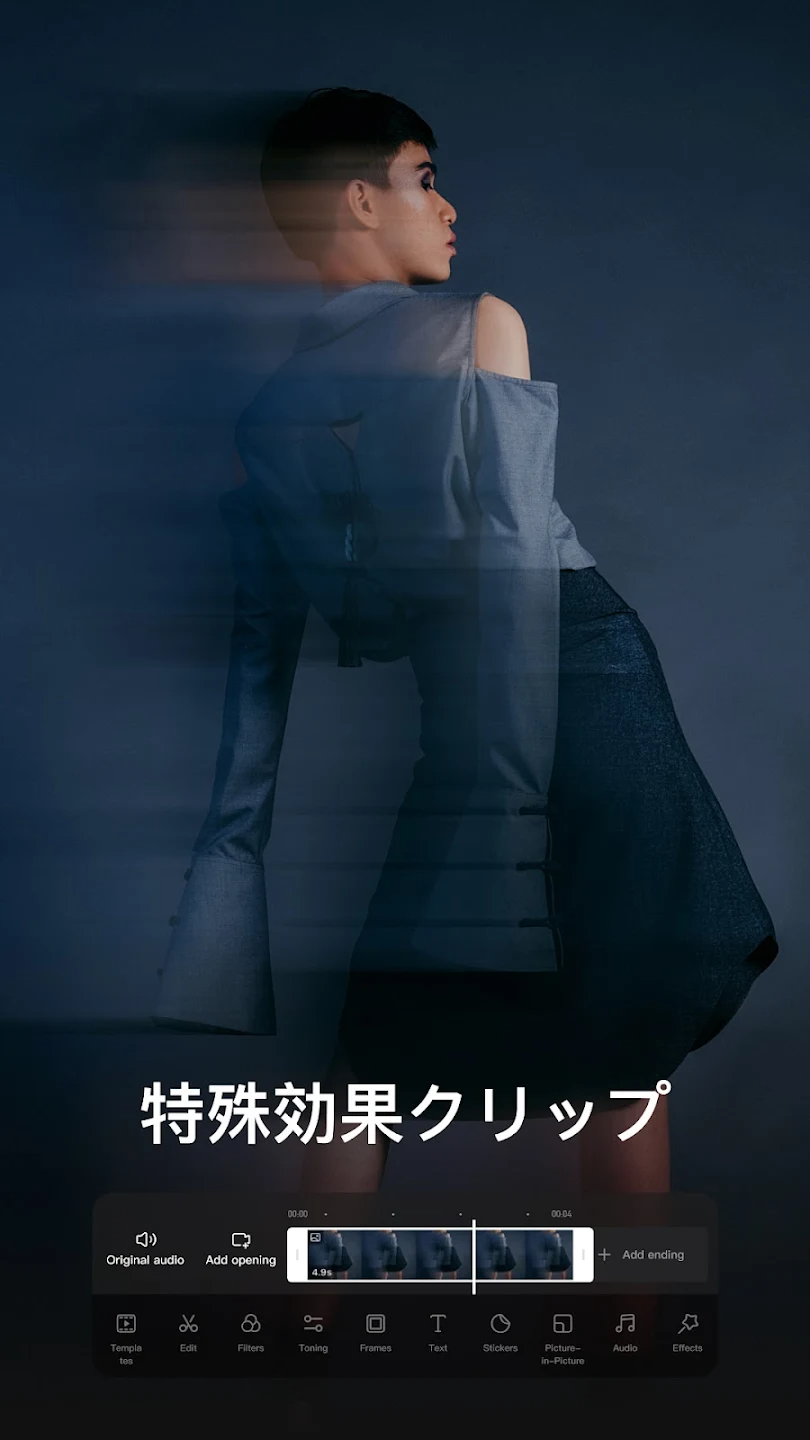 音楽 & サウンド追加:アプリ内の音楽ライブラリやオリジナル音源を使って動画を演出。
