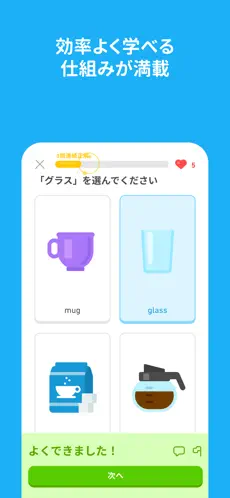 初心者でも無理なく続けられるゲーム感覚のレッスン設計で、毎日の習慣として自然に語学力がアップします。