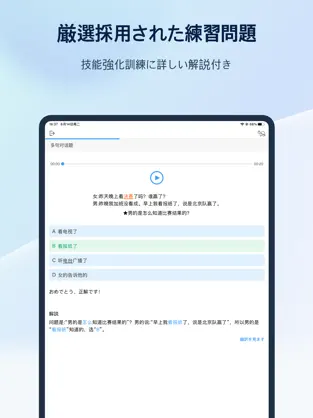 模擬試験モード:実際のHSK試験と同じ形式で練習可能。