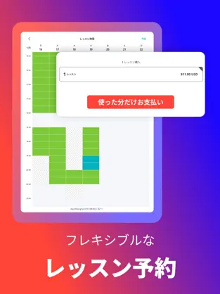 自分のライフスタイルに合わせてレッスン時間を自由に設定できます。忙しいビジネスパーソンや学生でも、すき間時間を活用して学習可能です。