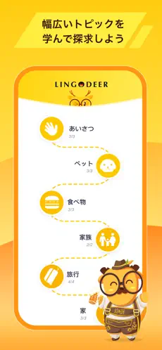 LingoDeerは、ゲーム感覚で学べる 使いやすさ と、しっかり学べる 本格的なカリキュラム を兼ね備えています。短時間でも集中して学習できる設計により、語学力を着実に伸ばすことが可能です。