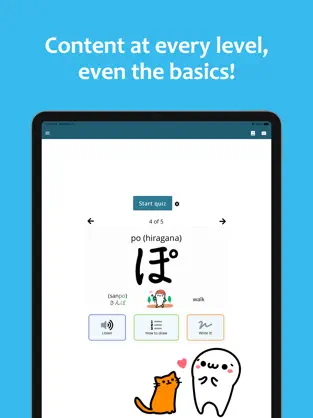 語彙、文法、漢字、リスニング、会話表現まで幅広く学習でき、初心者から上級者までレベルに応じて効果的に勉強できます。