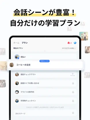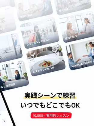 実際の会話シーンを想定したロールプレイ形式で練習可能。自己紹介、旅行、ビジネス会話など、シチュエーション別のスピーキング力を効果的に向上させます。 -