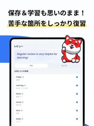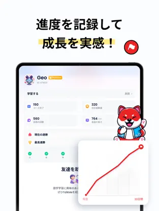 自分の発話時間、正答率、学習頻度などをデータで確認でき、モチベーション維持に役立ちます。