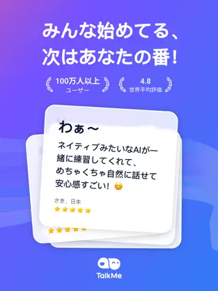 👉 今すぐ TalkMe をダウンロードして、AIと一緒に楽しく英会話を始めてみませんか?