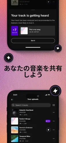 アーティストやDJがオリジナル楽曲をアップロードし、世界中に発信できる。 -