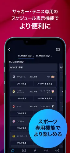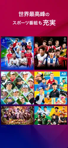 スポーツ中継が充実:サッカー、テニス、ボクシングなどの人気スポーツをリアルタイム配信。