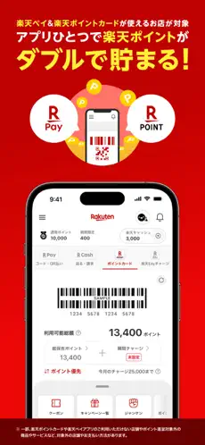 • 楽天ポイントカード連携:支払いと同時にポイントを貯める・使うことが可能