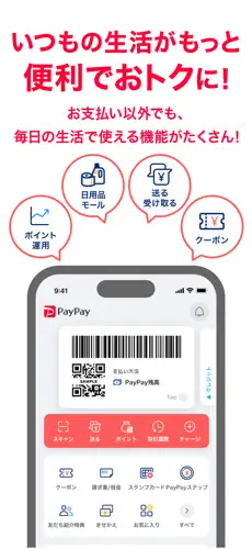 PayPay(ペイペイ)は、ソフトバンクグループとヤフー株式会社が共同で提供するスマホ決済アプリです。QRコードやバーコードを使った簡単な支払い方法で、現金を持たずに買い物ができます。日本全国のコンビニ、スーパー、飲食店、オンラインショップなどで利用可能で、キャッシュレス生活を快適にサポートします。