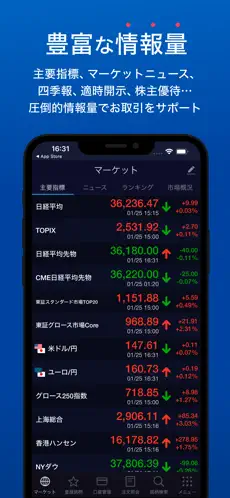 最新の株価や指数、ニュースを即時に確認可能。マーケットの動きを逃さずキャッチできます。