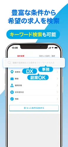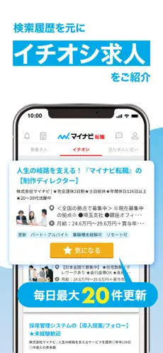 • 新着求人通知:希望条件に合う最新求人をプッシュ通知でお知らせ。