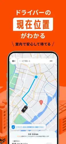 配車したタクシーの位置や到着予定時刻を地図で確認でき、待ち時間も安心です。 -