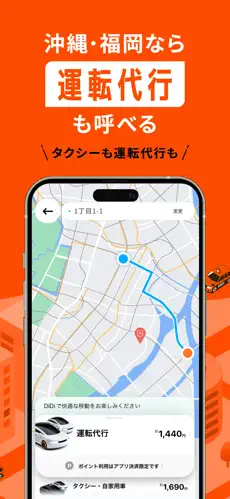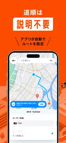目的地を入力すれば、乗車前におおよその料金を確認できます。安心して移動できるのが魅力です。 -