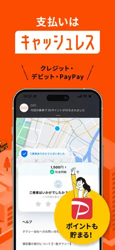クレジットカード、デビットカード、PayPayなどのキャッシュレス決済に対応。降車時に現金を出す必要がありません。 -