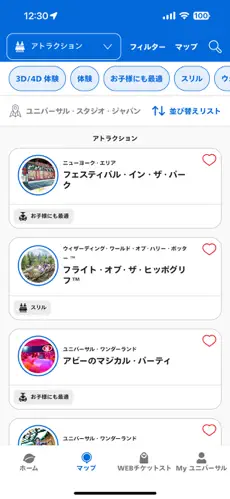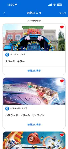 • マップ機能:パーク内のマップを見ながら、レストランやショップをすぐに探せます。