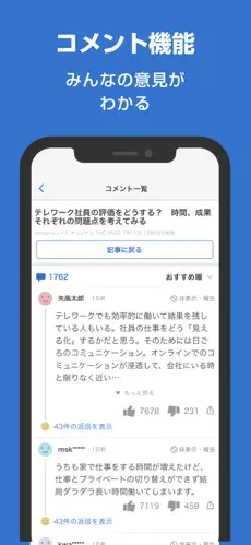 コメント機能:記事ごとにコメントを書き込み、他ユーザーと議論や共感を共有可能。