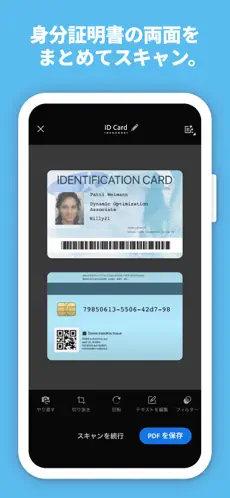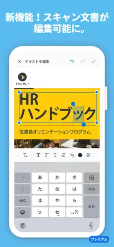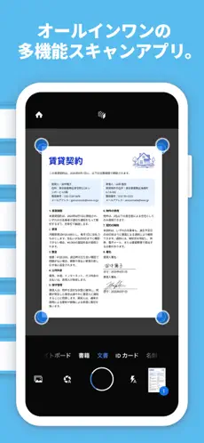 AI技術を活用したOCR(文字認識)機能を搭載しており、撮影した書類の文字を自動的にデジタル化。PDFとして保存・共有できるだけでなく、文字検索や編集も可能です。