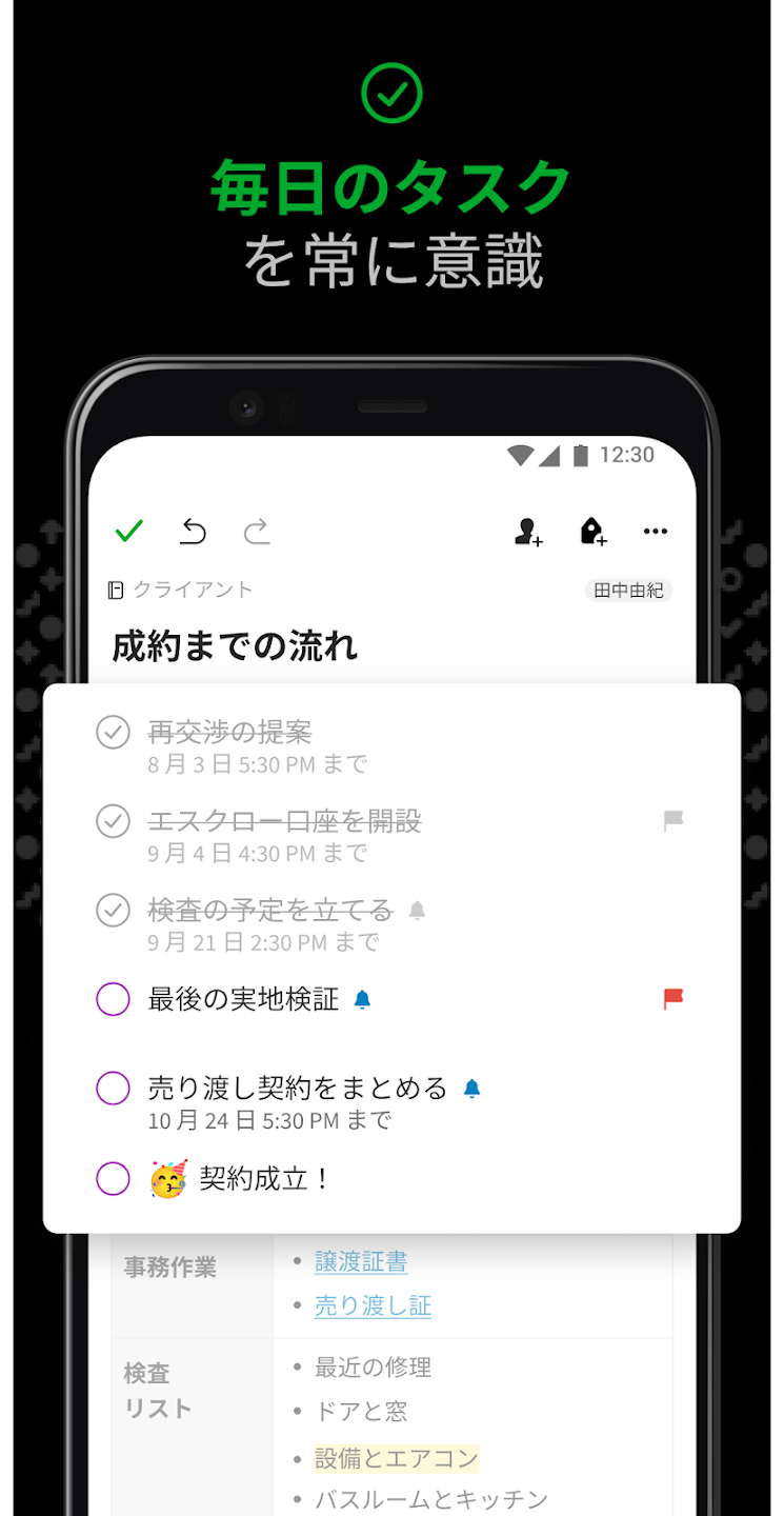 タスク管理:締め切りやリマインダーを設定して、やるべきことを見逃さない。