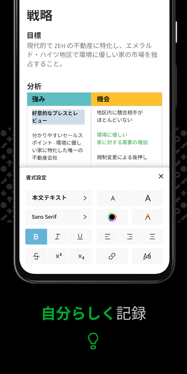 タグ・フォルダ管理:ノートをタグやノートブックで分類し、必要な情報をすぐに見つけられる。