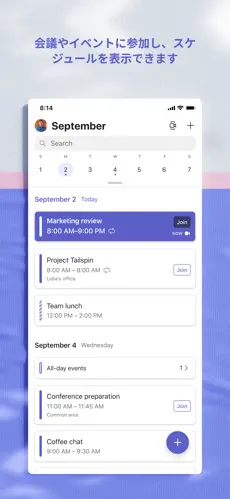 高品質なビデオ会議や音声通話をサポート。背景ぼかしや録画機能でオンライン会議をより快適に。 -