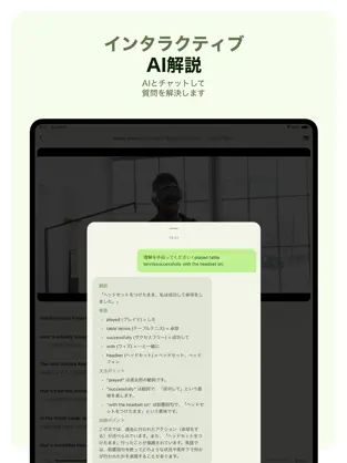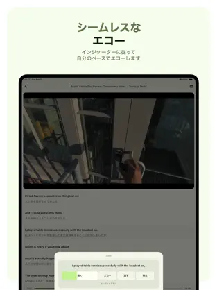 AIで文字起こしされたテキストを見ながら発音練習。リスニング力とスピーキング力の向上に効果的。 -