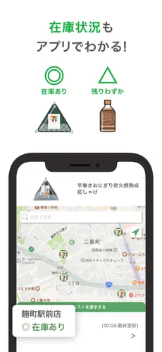 近くの店舗検索:現在地から最寄りのセブン‐イレブンをすぐに見つけられる。