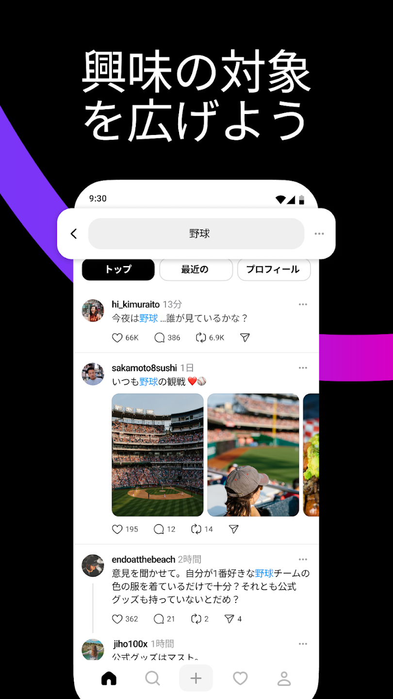 最大500文字の短文投稿が可能で、シンプルに情報を発信できます。 -