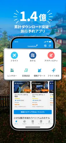 トラベロカ (Traveloka) は、ホテル予約、航空券の比較・購入、旅行に関する様々なサービスをスマートフォンひとつで利用できる総合旅行アプリです。インドネシア発の大手オンライン旅行サービスとして、東南アジアを中心に多くのユーザーから信頼されており、日本でも便利に使える旅行予約アプリとして人気を集めています。