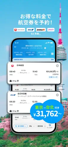 航空券予約:LCCから大手航空会社まで幅広く対応。出発地と目的地を入力するだけで簡単に最適なフライトを検索できます。