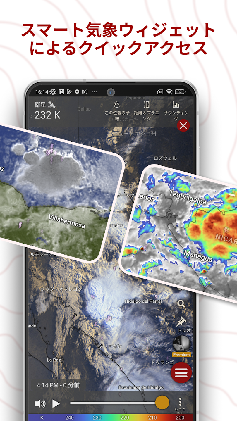 美しい地図上で、天気の動きを直感的に把握できる。 -